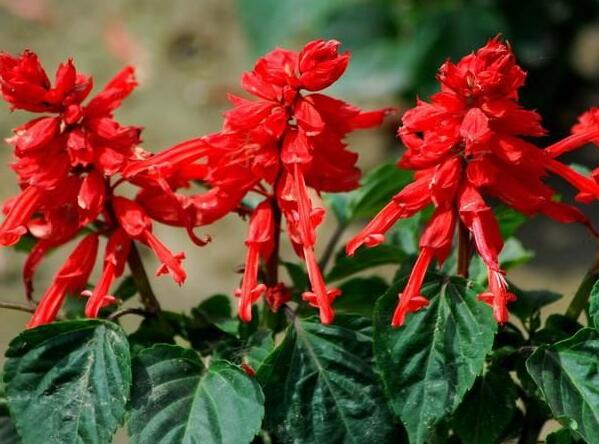 一串紅開(kāi)花的時(shí)候就像它的名字一樣,是一串一串的紅色花朵,不像其他花卉一樣,有許多種顏色,一串紅只有紅色的,不過(guò)它有不同的品種,分為高的和矮的,高大的一串紅適合地栽,矮小的適合盆栽做花壇布景。