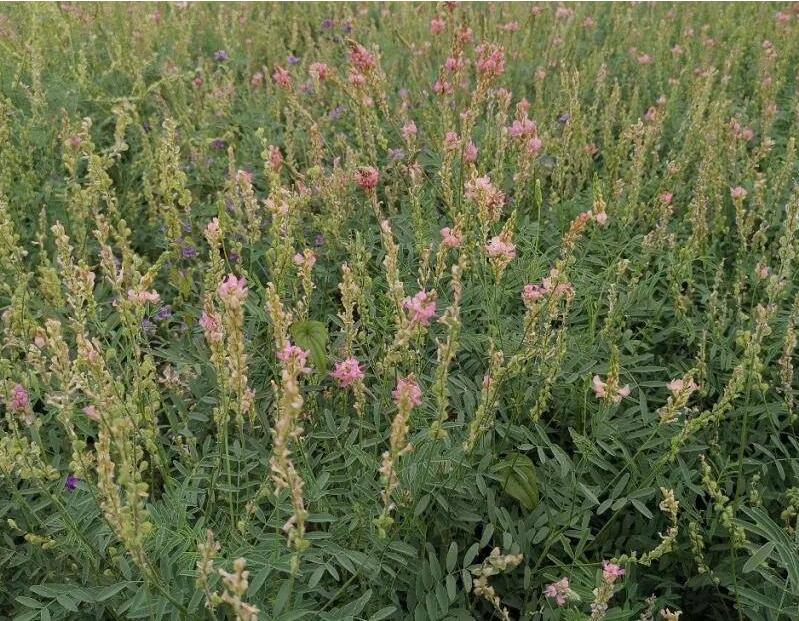 紅豆草屬于豆科的牧草品種,是多年生的草坪品種,種植一次可以收割3~7年,植株高度大概在一米到1米6左右,草質(zhì)比較柔嫩多汁,它的營養(yǎng)含量和紫花苜蓿非常接近,是驢子特別喜歡吃的牧草品種。